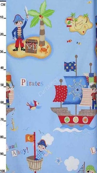 De piraten in de slaapkamer. Gordijnen van 100% katoen satijn.